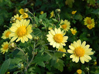 あたり一面がのじぎくです。花の中にいると甘酸っぱい香りが漂います。ミツバチが飛び回っています。斜面に花壇を作っているので、作業も大変だったことでしょう。遠くからでも山肌が白くなって確認できます。黄色いのじぎくもありました。
